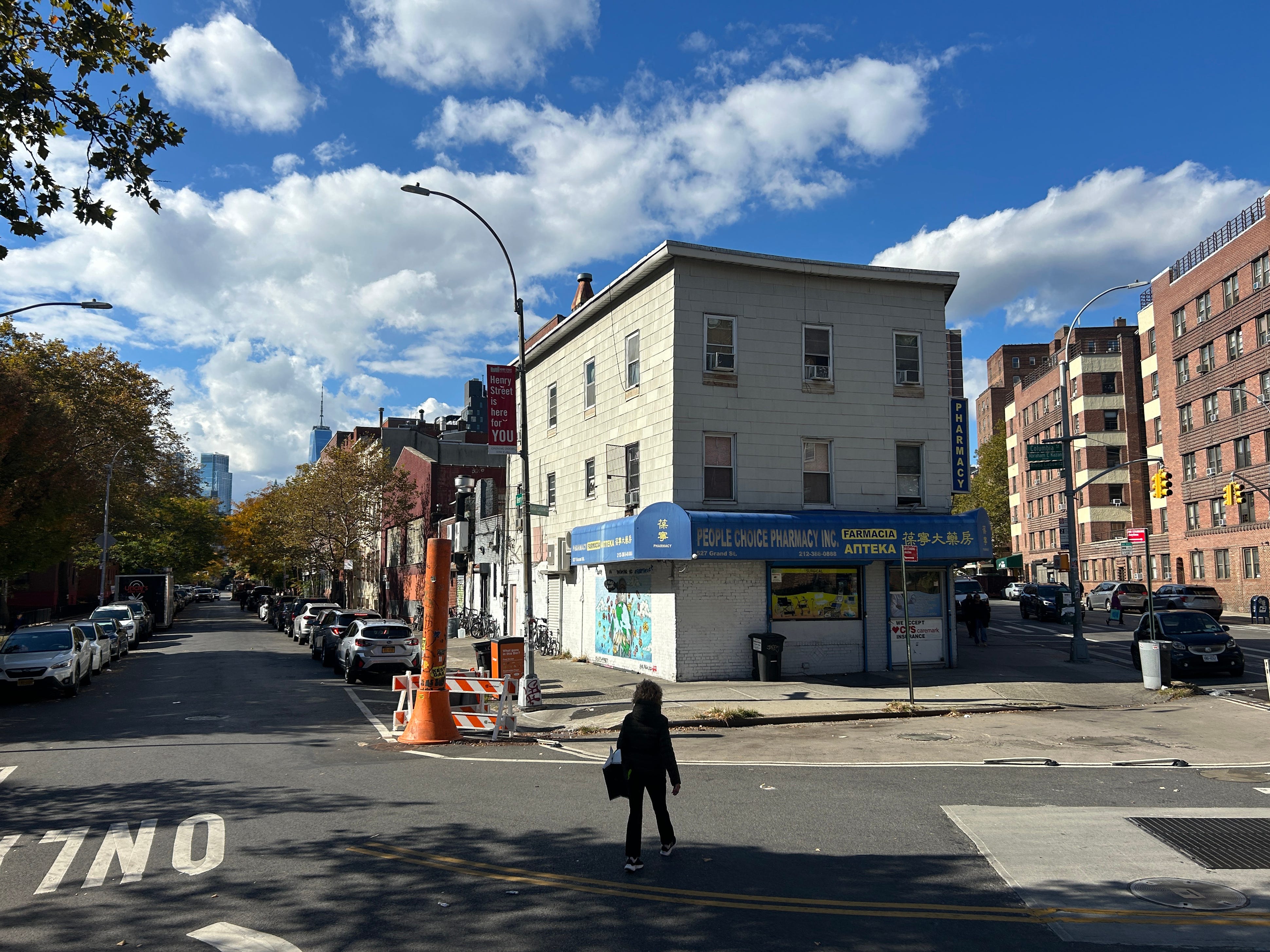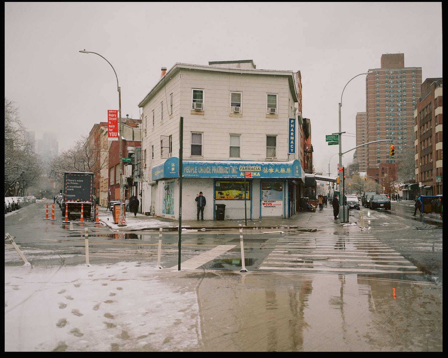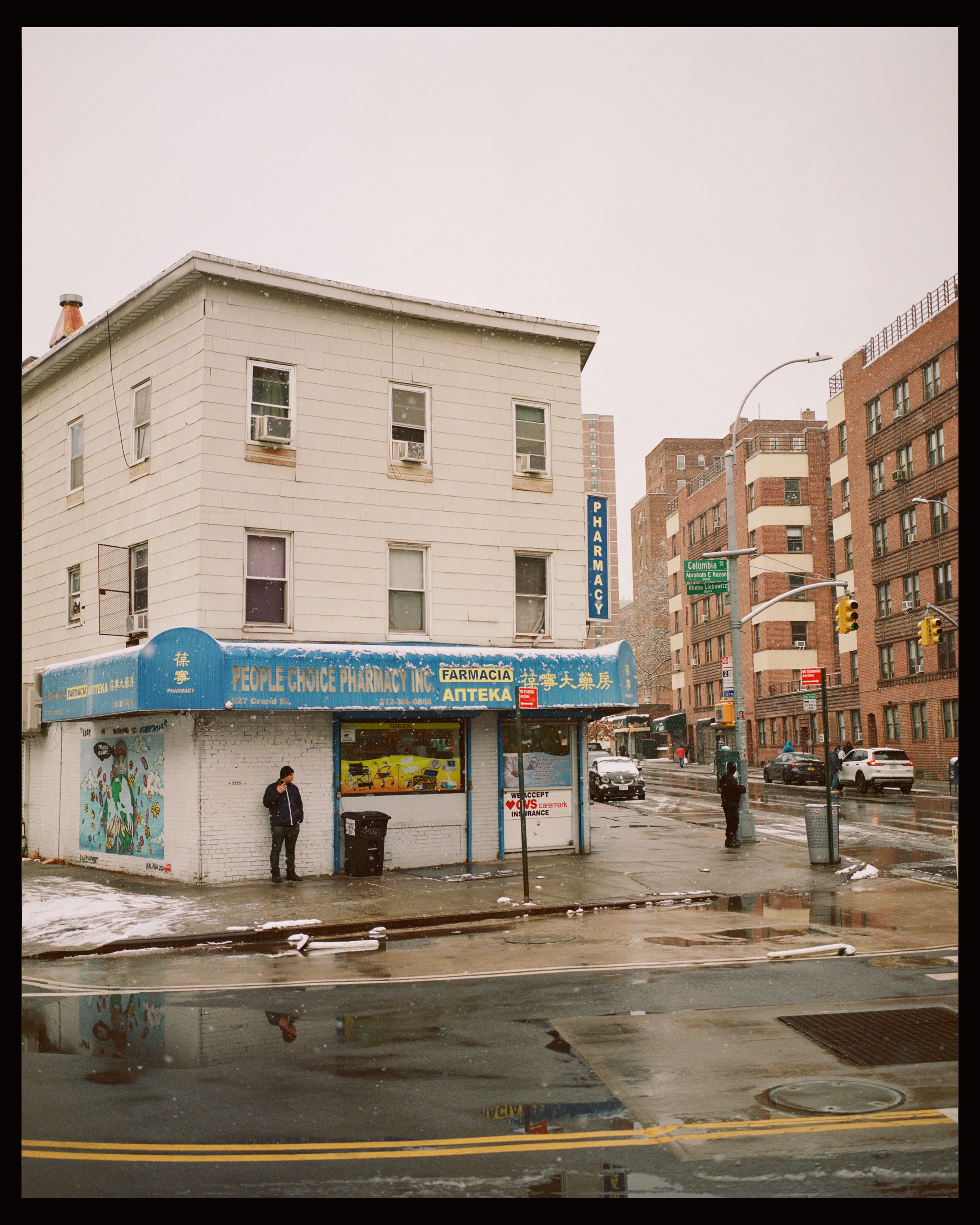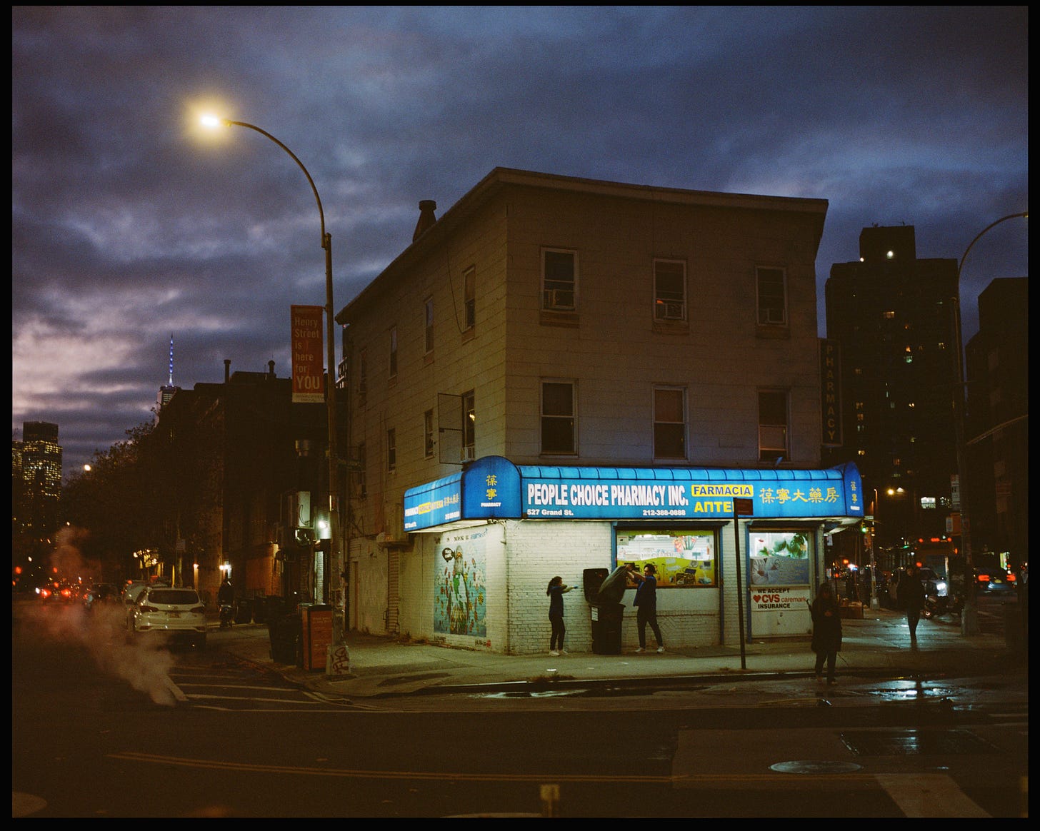 It sits on a narrow, angled corner where Henry Street and Grand meet on the Lower East Side of Manhattan—a kind of sad little Flatiron building, but one I like very much. I’ve always been drawn to these odd corners; they force interesting architectural choices, like this funny little trapezoid of a building. I pass it once a week when I take my daughter to dance class, and I started photographing it as I walked by. Eventually, I began going out of my way to visit it with a camera. Here are a few of my favorites.